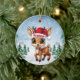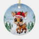 Prancer! Celebrate the holiday season with this festive round ceramic red ornament featuring an endearing woodland forest animal cartoon graphic of a cute baby reindeer wearing a Santa hat, and Merry Christmas written in white. Perfect deer with antlers for decorating your tree or as a thoughtful gift, this whimsical doe decor makes a cherished keepsake for years to come. Customize by changing the text, the font, the font color, or remove the text. You can even transfer this design onto other products. Enjoy this design your way! 🎄🦌