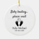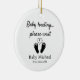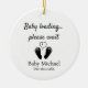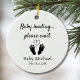 Share your most joyful news in a way they’ll never forget with this Personalized Pregnancy Announcement Christmas Ornament. Featuring a funny message “Baby loading...please wait,” with an image of tiny baby feet and a heart in the center. This cute, simple ornament can be customized with your baby’s name and arrival date for a truly personal touch.