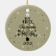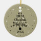 Un adorno verde salado pálido con el diseño en blanco y negro para su primera Navidad como Sr. y Sra. junto con el año.