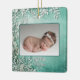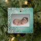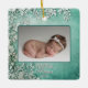 Primer ornamento cerámico de invierno de Navidad verde/Verde azulado Keepsake para bebés. Este adorno vintage de bosque verde de invierno es un recuerdo perfecto para la primera Navidad de su bebé. Con un delicado diseño botánico verde azulado, verde y blanco, contiene una foto e incluye detalles de nacimiento personalizados como nombre, fecha, peso y longitud en la parte posterior. Los tonos verdes y verde azulados profundos y los detalles intrincados aportan un encanto atemporal, lo que lo convierte en un hermoso añadido a la decoración de sus vacaciones. Un conservador significativo que celebra la primera festividad de su bebé, será apreciado en los años venideros.