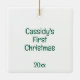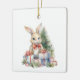 Ilustracion caprichoso de un lindo conejito con regalos y un árbol impreso en un adorno de cerámica que conmemora la primera Navidad del bebé. El texto de la parte posterior puede cambiarse. Gráfico asistido por IA adquirido con uso comercial. Pintura: DelightfulDigiArt