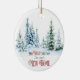 ¡Celebra la temporada navideña de los Navidades en tu nuevo hogar! Felicidades por mudarte a tu nuevo hogar. El invierno festivo nevó árboles con saludo de estilo tipográfico. Monogramado con la dirección de tu casa en la parte de atrás. Crea un recuerdo maravilloso para mantener el amor año tras año.