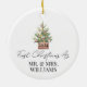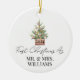 Este primer Navidad casado personalizado color de agua de árbol de navidad adorno de cerámica es perfecto para tu primera boda de Navidad!