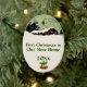 Ornamento conmemorativo del recuerdo del primer navidad en el nuevo ornamento casero. Añada el año del navidad para modificar esta escena de la nieve para requisitos particulares del navidad del país con una cabaña de madera en las maderas cubiertas con nieve, el humo que viene de la chimenea, árboles de navidad imperecederos y una luna roja llena en el fondo para la escena perfecta de la noche de navidad. Lee el primer navidad en nuestro nuevo hogar con año modificado para requisitos particulares del día de fiesta debajo en letras elegantes del verde del día de fiesta con efecto de sombra. Las campanas de navidad con las hojas del acebo están en la parte inferior. Regalo perfecto del estreno de una casa para los nuevos dueños de la casa, especialmente las cabinas o los hogares rurales en el país. Personalice más con nombres, el etc, si usted tiene gusto. ¿Quiera comprar una diversa idea del regalo del navidad con el mismo diseño? Este diseño casero del 1r navidad se puede comprar en muchos otros regalos personalizados, también, pues tenemos este diseño nevoso del día de fiesta en porciones de productos y de regalos, en nuestra tienda de angela65 Zazzle. Tenemos otros ornamentos adaptables del árbol de navidad también.