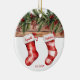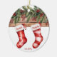 ¡Celebra tu hito especial con nuestro adorno de cerámica personalizado "First Christmas Engaged"! Este elegante keepsake cuenta con dos medias de Navidades ilustradas, cada una con campos de personalizable para usted y los nombres de su pareja, lo que lo convierte en un recuerdo perfecto de su primera temporada de vacaciones comprometida. La parte trasera del adorno ofrece un espacio para subir tu foto favorita, rodeada por el texto festivo "Nuestra primera Navidad comprometida". Todos los elementos de texto son totalmente personalizables, lo que le permite añadir un toque personal y hacer que este adorno sea verdaderamente suyo. Un regalo perfecto para las parejas comprometidas, recién casados o una agradable adición a tu propia decoración de vacaciones, este adorno capta la alegría de tus primeros Navidades comprometidos juntos.