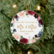 Elegante acuarela Gold Script Borgoña Marsala y floral azul Primer Boda de Navidad