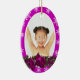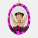 Decoración oval festiva de Navidad, con copos de nieve blancos, rayas y una corona tradicional llena de bayas de nieve rosa fucsia, hojas verdes y un arco satinado FAUX que enmarca una plantilla fotográfica bordeada con guarnecido blanco. TI PERSONALIZAR: cambie la fotografía por su cuenta y cambie la redacción a las plantillas para que sea única. IDEAL AS - En temporada de vacaciones, se sientan como los chismosos para amigos, familia, parejas y seres queridos.