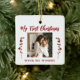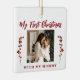 La primera Navidad del bebé con la madre, un árbol único de keepsake adornado con ramas de bayas rojas, tus fotos de personalizado 2 y el texto de escritura de tipografía moderna roja. ++++++++ Puede ser un hermoso regalo de Navidades para una nueva madre.