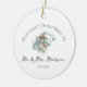 Celebra tu primera Navidad como recién casados con este encantador ornamento de cerámica fotográfica, conmemorando el hito especial. Personalízalo con una foto favorita de un boda o una pareja, bellamente enmarcada en un diseño atemporal de "Primera Navidad casada como Sr. y Sra.". Diseñado para la durabilidad, este adorno de sake es perfecto para las vacaciones y traerá alegría año tras año. Es una manera encantadora de recordar tus primeras vacaciones juntos como pareja casada, agregando un toque cálido y festivo a tu árbol de Navidad.