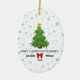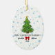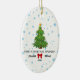 Primera Navidad Casado 2024 Personalizado Pareja de Cerámica Ornamento. Celebra la primera Navidad de una pareja como recién casados con este adorno bellamente diseñado que incluye un árbol de Navidad festivo. El adorno está decorado con delicados copos de nieve, una cinta roja y los nombres personalizados de la pareja, junto con el año 2024. Perfecto para las parejas recién casadas, este keepsake capta la alegría de su primera temporada de vacaciones juntas. Personalizar este adorno con sus nombres para darle un toque personal e inolvidable a su decoración de vacaciones. Elija el estilo (redondo, cuadrado, ovalado, estrella o forma de corazón) en el menú de opciones.