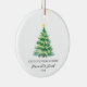 Crea tu primer ornamento casado de Navidad con nombres personalizados y año junto con el elegante diseño de árbol de navidad de acuarela.