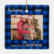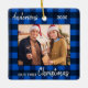¡Nuestra Primera Navidad! Decoren su árbol o envíen un regalo especial con este adorable adorable adorno de festividades de pareja recién casada personalizado personalizado. Añade tus fotos favoritas y personaliza con nombre y año. El ornamento es de doble cara, se pueden hacer diferentes fotos a cada lado. DERECHOS RESERVADOS © 2020 Judy Burrows, Black Dog Art - Todos los derechos reservados. Primera Navidad Casada Pareja de Papas Azules Foto Ornamento cerámico