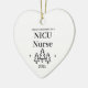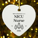 Primera Navidad como un adorno de corazón de enfermeras nicu para un nuevo trabajo en enfermería en la unidad de cuidados intensivos neonatales. Elegantes adornos de cerámica de porcelana en blanco con letras negras. Con árboles y estrellas navideñas.