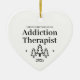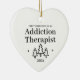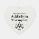 Primera Navidad como terapeuta adictivo adorno cardíaco para un nuevo trabajo. Elegantes adornos de cerámica de porcelana en blanco con letras negras. Con árboles y estrellas navideñas.