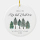Este adorno rústico de vacaciones muestra la tipografía "mi primera Navidad como tía" con escritura de bonito. Se incluyen los nombres personalizados y el año personalizado. En el centro, hay unos hermosos pinos pintados. Un dulce regalo de vacaciones para una tía querida. Comprar esta tienda para coordinar camisetas.