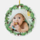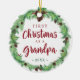 PRIMERA NAVIDAD COMO GRANDPA en un tipo de letra con guijarros de cepillo y el año en una corona de pino verde en la parte delantera y una foto en el diseño de la corona en la parte posterior. PUNTO DE FOTOGRAFÍA: Para obtener los mejores resultados y más rápidos, elija una foto con el sujeto en el medio y/o pre-recortar en una forma cuadrada ANTES de subir. Póngase en contacto con el diseñador a través de Zazzle Chat o makeitaboutyoustore@gmail.com si desea modificar este diseño, en otro producto o si desea coordinar elementos.