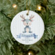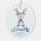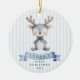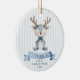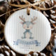 Celebra la primera temporada de vacaciones de tu pequeño con un aguijón que será valorado en los años venideros. Este encantador ornamento redondo cuenta con un adorable reno azul, acentuado con suaves detalles festivos y un dulce fondo a rayas. Personalizado con el nombre de su hijo y el año, es la manera perfecta de marcar un hito tan especial.