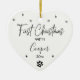 Marque la primera Navidad de su gato con este adorno de foto en forma de corazón adorable. La parte delantera muestra la frase "Primera Navidad con" en una fuente de escritura encantadora, espacio para el nombre de su gato, el año y una huella de pata linda. Agregue su foto favorita de su gatito o gato adulto en la parte posterior para crear un recuerdo de vacaciones apreciado. Ideal para amantes de los gatos, nuevos padres de mascotas o como un recuerdo especial para celebrar una adopción reciente o la primera temporada de vacaciones de su gato en casa.