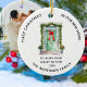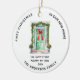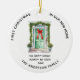 Conmemorar tu gran movida con esta encantadora Primera Navidad en nuestro nuevo ornamento residencial. El diseño cuenta con un bonito ilustracion acuático de entrada festiva, con una puerta verde clásica, una corona de vacaciones y un arco rojo. Este ornamento personalizado es el lugar perfecto para los nuevos propietarios, que celebran su primera temporada de vacaciones en su nuevo lugar. Personalizar la parte de atrás con una preciada foto familiar y agrega tu nueva dirección y el año para hacer de esto un tesoro verdaderamente atemporal.