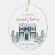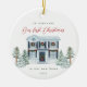 Este hermoso adorno vacacional cuenta con una casa pintada de invierno, decorada para Navidades con coronas de bonito y pinos nevados. Festividad "nuestra primera Navidad" en nuestro nuevo guión de casa se incluye con el año personalizado y su nueva dirección de calle en el frente. ¡La parte posterior es la dirección completa y el nombre del nuevo propietario de la casa en un fondo blanco!