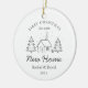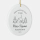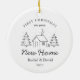 Celebra un nuevo capítulo con este adorno de cerámica blanca redonda y limpia. Un acogedor dibujo de una casa y un pino se sienta bajo el titular arqueado "Primera Navidad en nuestro Nuevo Hogar", con líneas debajo para los nombres y el año. El sencillo diseño en blanco y negro encaja con cualquier árbol, se ve bien en las cajas de regalos y hace un regalo perfecto para los nuevos propietarios. Añade tus nombres y año para crear un recuerdo atemporal que cuelgues cada diciembre.