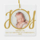 Este adorno de fotos de primera Navidad como abuelos está decorado con la palabra JOY en oro, tipografía de escritura elegante en un fondo blanco. Personalizable fácil.