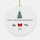 Celebra tu primera Navidad casada con el adorno de nuestra encantadora pareja. Con un hermoso árbol de Navidad cubierto de nieve sobre un fondo blanco, adornado con un elegante arco rojo que le da un toque de coqueta. El texto negro audaz y el guión elegante se personalizan con los nombres de la pareja y la fecha del boda, convirtiéndolo en el recuerdo perfecto para conmemorar juntos su primera Navidad. ¡Un regalo atemporal y significativo para los recién casados!
