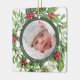 Decoren su árbol o den un regalo especial esta temporada de vacaciones con esta elegante foto en un adorno de navidad de diseño de corona, y decoración a juego. Este adorno de navidad de perro tiene una corona de color verde y roja con bayas y azulejos. Personaliza con nombre y año . Este primer adorno navideño es perfecto para bebés, mascotas, perros, abuelos y recién casados. Visite nuestra colección para ver tarjetas de navidades de fotos, decoración y regalos a juego. DERECHOS RESERVADOS © 2020 Judy Burrows, Black Dog Art - Todos los derechos reservados. Primera Navidad Mistletoe Wreath Personalizado Baby Photo Ceramic Ornament
