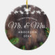 Primera Navidad Mr. & Mrs. Wood Winter String Ilustra El Ornamento Cerámico. Este diseño está decorado con bonitas lámparas de cuerda, madera rústica y agujas de pino.