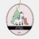 Cebra bebé adorable con rayas rojas/verdes, Navidades sembrando y árbol verde en el fondo. Fondo rosa claro para una niña. Banner negro y borde a rayas alrededor de un adorno. Plantilla creada para usted. ¡Perfecto para los padres que celebran el primer hijo en los Navidades!