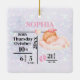 Primeras estadísticas de natalidad navideña y ornamento Metalizado fotográfico de Baby Girl. Celebra la primera Navidad del bebé con este adorno de fotos. La imagen y el texto son fáciles de personalizar. Estadísticas de nacimiento y foto.