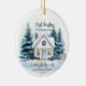 Este adorable adorno "PRIMERA NAVIDAD EN NUESTRO NUEVO HOGAR" presenta un ilustracion acuarela de una acogedora casa blanca y pinos cubiertos de una suave manta de nieve. La serena escena del invierno añade un toque de calidez y nostalgia, convirtiéndolo en el recuerdo perfecto para celebrar las primeras vacaciones de una pareja o familia en su nuevo hogar. Con su encantador diseño y su sentimiento festivo, este adorno adornará maravillosamente cualquier árbol de Navidad y servirá como un atesorado recordatorio de este hito especial año tras año. Haga clic en "Personalizar esta plantilla" para personalizar del mensaje y los nombres. Si desea cambiar los tipos de letra, las colocaciones y los colores de los textos, vaya a "Editar usando la herramienta de diseño".