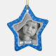 Snowflakes Baby's First Christmas Navy Blue Star Ornament. Personaliza con el nombre y la información de tu pequeña, así como el año.
