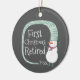 Primera Navidad Retirada Personalizada Cute Snowman Ceramic Ornament. Personalice la información de su personalizado en la parte frontal y posterior.