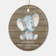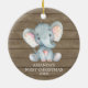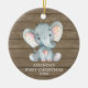Bebé elefante rústico lindo primer ornamento de cerámica de Navidad