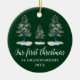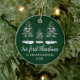 Moderna y elegante escritura caligráfica, acuarela de pinos, verde nuestra primera Navidad como adorno de abuelos