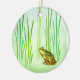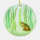 Adorne su árbol de navidad con este ornamento divertido del día de fiesta. Ofrece una pequeña rana verde femenina con un vientre amarillo rodeado por la hierba de la charca. Ella parece sola como si ella esté esperando a su príncipe el encantar para aparecer.