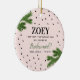 Propuesta personalizada de la dama de honor rosa con ornamento cerámico de puntos. Personalice la información de su personalizado en la parte frontal y posterior.
