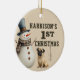 Un adorable cachorro de cachorro con acuarela y un muñeco de nieve hacen de estos primeros adornos navideños personalizados un regalo de sake que hace que el corazón se caliente. Personalizar fácil para hacer un regalo especial a estos Navidades.