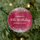 Crea tu propio ornamento de círculo de 50 años para tu mejor amigo. Personalizar el texto de bloque y/o el estilo de letra de caligrafía. Cambiar el texto para cualquier cumpleaños especial o de hito. El fondo del arte digital es un falso purpurina plateado y rosa oscuro, frambuesa clara y Relieve metalizado gris magenta. Al revés, puedes añadir una foto familiar si quieres personalizar aún más este regalo. Ornamento de cumpleaños de hitos de hitos para ella.