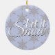 Este ornamento de copo de nieve Let it Snow Winter es una decoración festiva para un árbol de Navidad. Presenta un patrón de copo de nieve gris en un fondo peringuible con la frase 'Let it Snow' en un guión cursivo blanco. Que este adorno cree algo de alegría navideña.