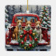 Adorno De Cerámica Rat Terrier Christmas Red Truck Holiday