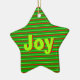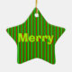 Ornamento estelar de rayas navideñas. El texto y el color de fondo se pueden personalizar.