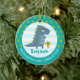 Este adorno de foto personalizado es un recuerdo maravilloso para el graduado de jardín de infantes favorito o sus familiares. La parte delantera presenta una visual caprichosa y juguetona de un t-rex azul marino lindo, audaz y kawaii, y tipografía divertida y manuscrita sobre un fondo a rayas turquesa claro y blanco. Un patrón de palmera adorable que se superpone al azul turquesa está en el borde, enmarcando la ilustración. En la parte posterior está la foto que elijas. Personaliza el texto personalizado con el nombre y año de clase de tu graduado. Personaliza el texto personalizado con el nombre de tu graduado y un mensaje especial. Elección de materiales de cerámica, metal, vidrio o marco de metal premium y forma circular o cuadrada. También están disponibles invitaciones, pancartas, platos de papel y servilletas, calcomanías y otros regalos de graduación en esta colección genial y especial. Garantizado para preservar los recuerdos queridos de esta ocasión especial.