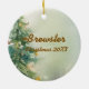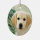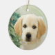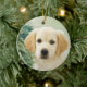 Adorno de Navidad de cerámica personalizado con espacio para una foto y nombre de mascota.