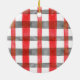 Adorno De Cerámica Red and Silver Grey Plaid Round Pet Ornament