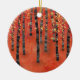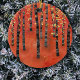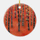 Un moderno cuadro paisajístico de un bosque de abedules o álamos en ricos tonos rojos, naranjas y amarillos. Arte original de Nic Squirrell.