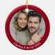 ¡Los navidades desean y mistletoe besos! ¡De eso están hechos los Navidades! Este adorable adorno rojo y blanco es un auténtico placer para las vacaciones. Añade una foto y tus nombres al dorso del adorno. ¡Genial para los recién casados! Colóquelo en su árbol para que tenga un poco más de encanto. Diseñado para ti por Blackberry Boulevard.