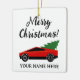 Red Tesla pickup truck with Christmas tree retro Ceramic Ornament . Modern version of old vintage Chevy truck hauling a Christmas tree. Personalized gift for the holidays.