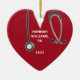 Regalo creativo de enfermera y recuerdo de graduación de la escuela de enfermería con batas rojas de hospital y estetoscopio. Para personalizar, edite el texto y cree un adorno personalizado para la graduada de enfermería.